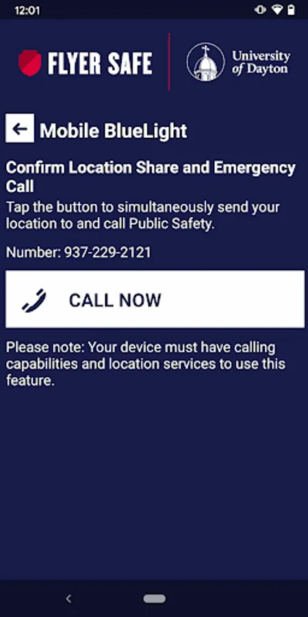 - Mobile Bluelight: Send your location to University of Dayton security in real-time in case of a crisis