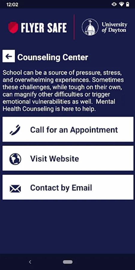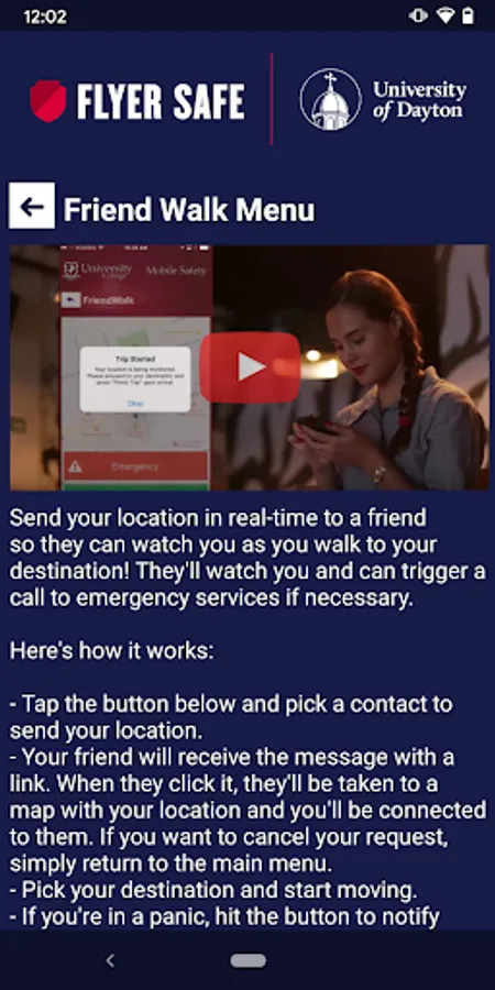 - Safety Notifications: Receive instant notifications and instructions from University of Dayton safety when on-campus emergencies occur.