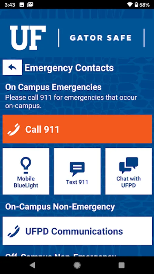 - Mobile BlueLight: Send your location to UFPD in real-time in case of a crisis