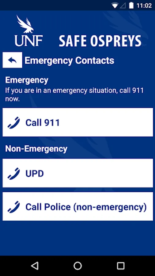 - Emergency Contacts: Contact the correct services for the UNF area in case of an emergency or a non-emergency concern