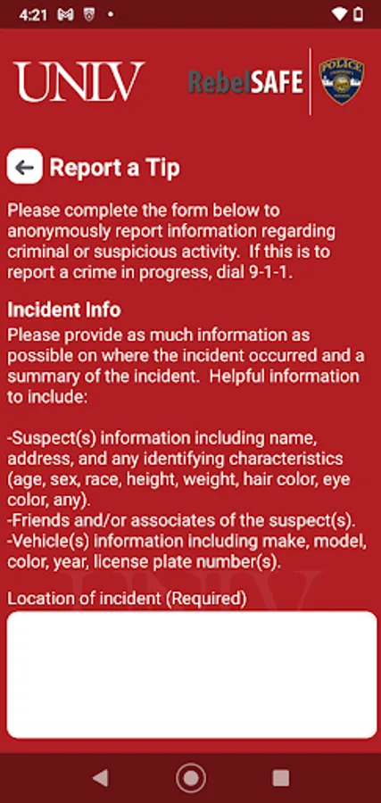 - Report a Tip: Report a safety/security concern directly to UNLV security.
