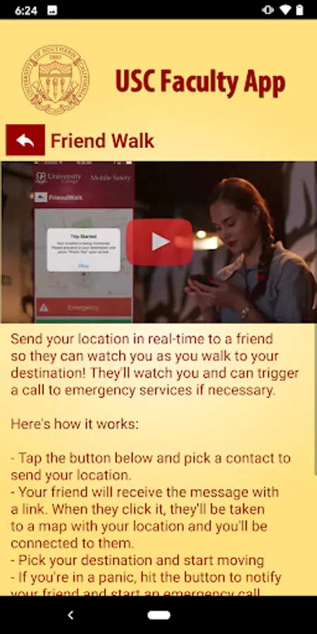 - Safety Notifications: Receive instant notifications and instructions from USC safety when on-campus emergencies occur.