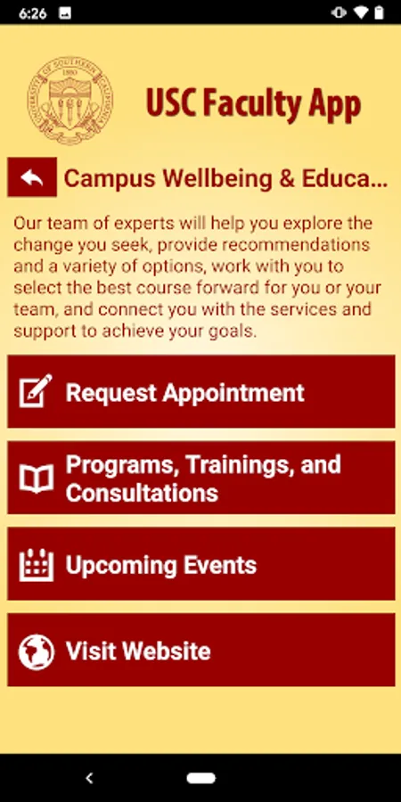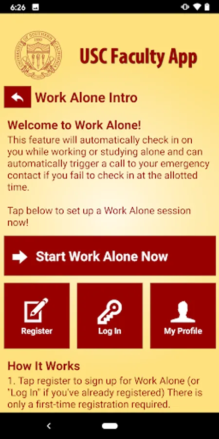 USC Faculty App is the official safety app of University of Southern California. It is the only app that integrates with USC's safety and security systems all in one place at your fingertips. The app provides faculty and staff with added safety on the USC campus. The app will send you important safety alerts and provide instant access to campus safety resources.