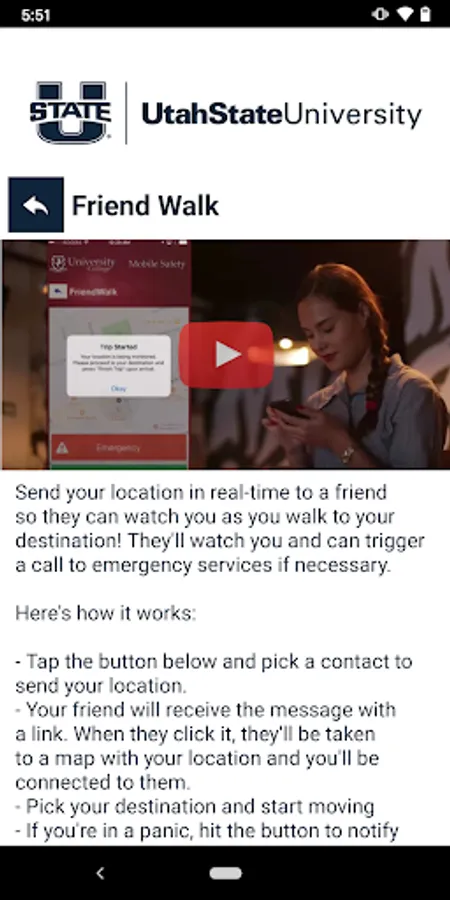 - Safety Notifications: Receive instant notifications and instructions from Utah State University safety when on-campus emergencies occur.