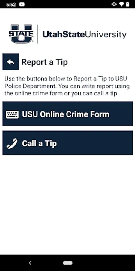 - Tip Reporting: Multiple ways to report a safety/security concern directly to Utah State University security.