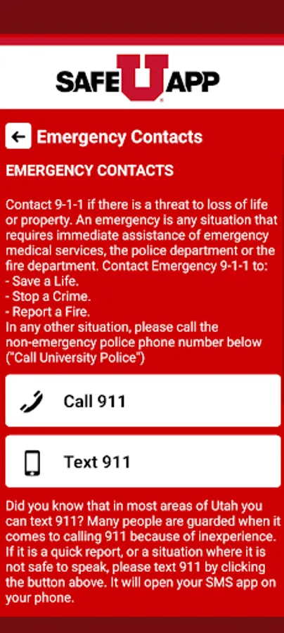 - Safety Notifications: Receive instant notifications and instructions from The University of Utah safety when on-campus emergencies occur.