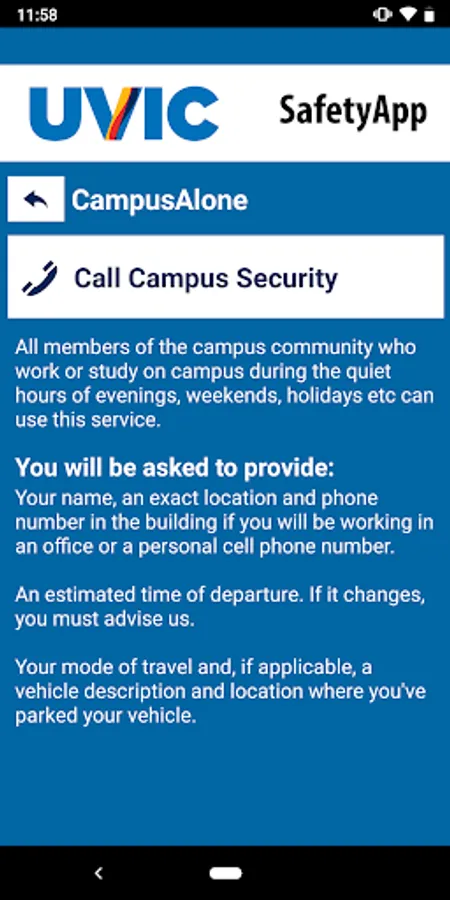 UVic SafetyApp is the official safety app of University of Victoria. It is the only app that integrates with the University of Victoria’s safety and security systems. Campus Security has worked to develop a unique app that provides students, faculty and staff with added safety on the University of Victoria campus. The app will send you important safety alerts and provide instant access to campus safety resources.