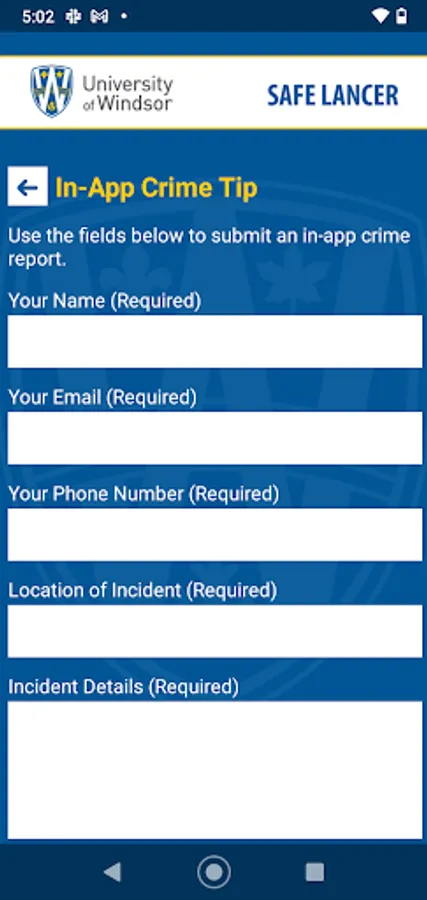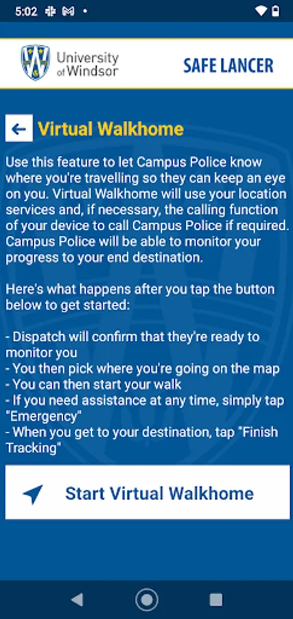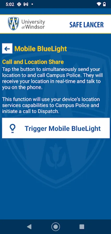 SAFE LANCER is an essential tool to enhance your safety at University of Windsor. The app will send you important safety alerts and provide instant access to campus safety resources. SAFE LANCER is the official mobile safety app of the University of Windsor.