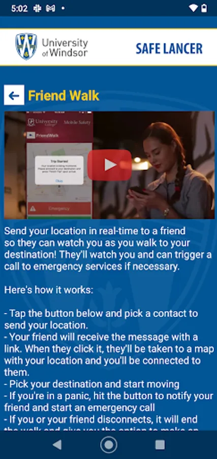 - Campus safety resources: access all important University of Windsor safety resources in one convenient app.