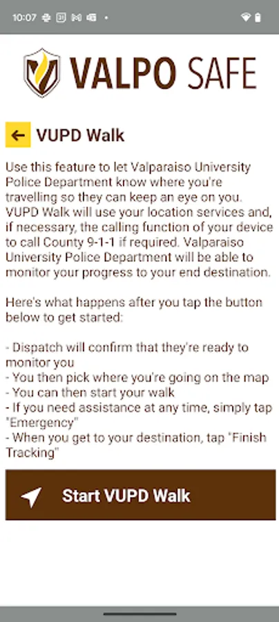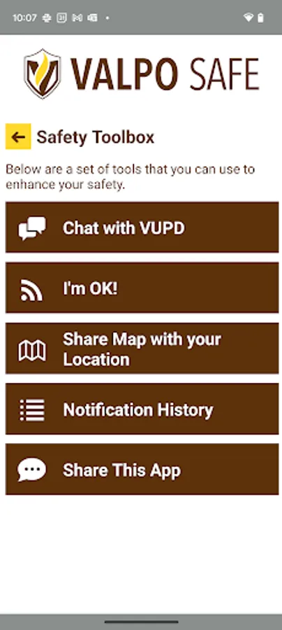 - Safety Notifications: Receive instant notifications and instructions from Valparaiso University safety when on-campus emergencies occur.