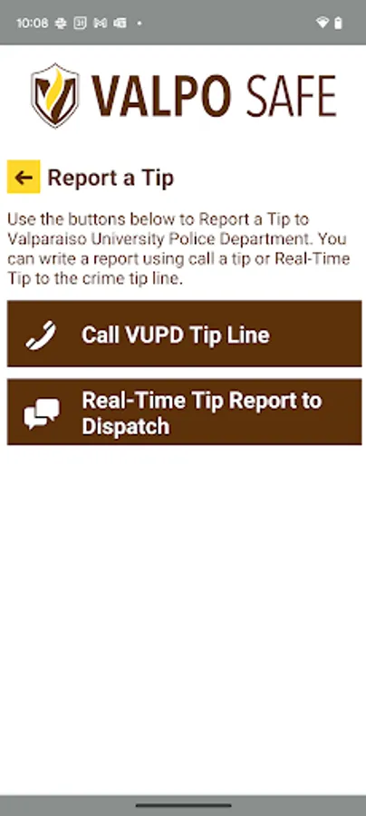 - Tip Reporting: Multiple ways to report a safety/security concern directly to Valparaiso University security.