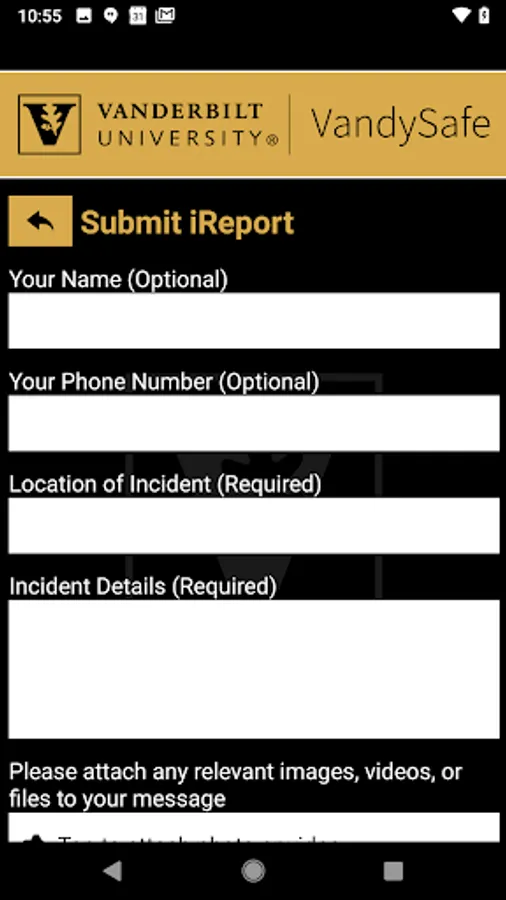 - Tip Reporting: Multiple ways to report a safety/security concern directly to Vanderbilt University security.