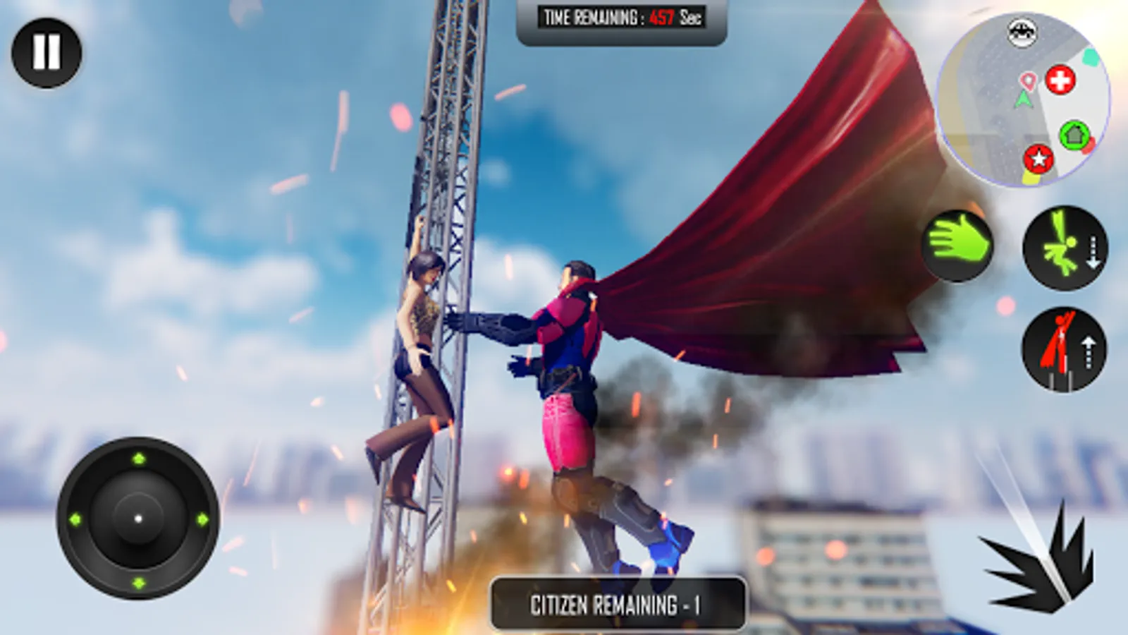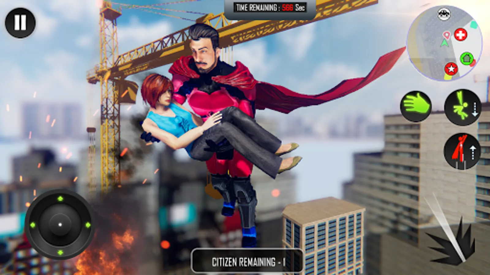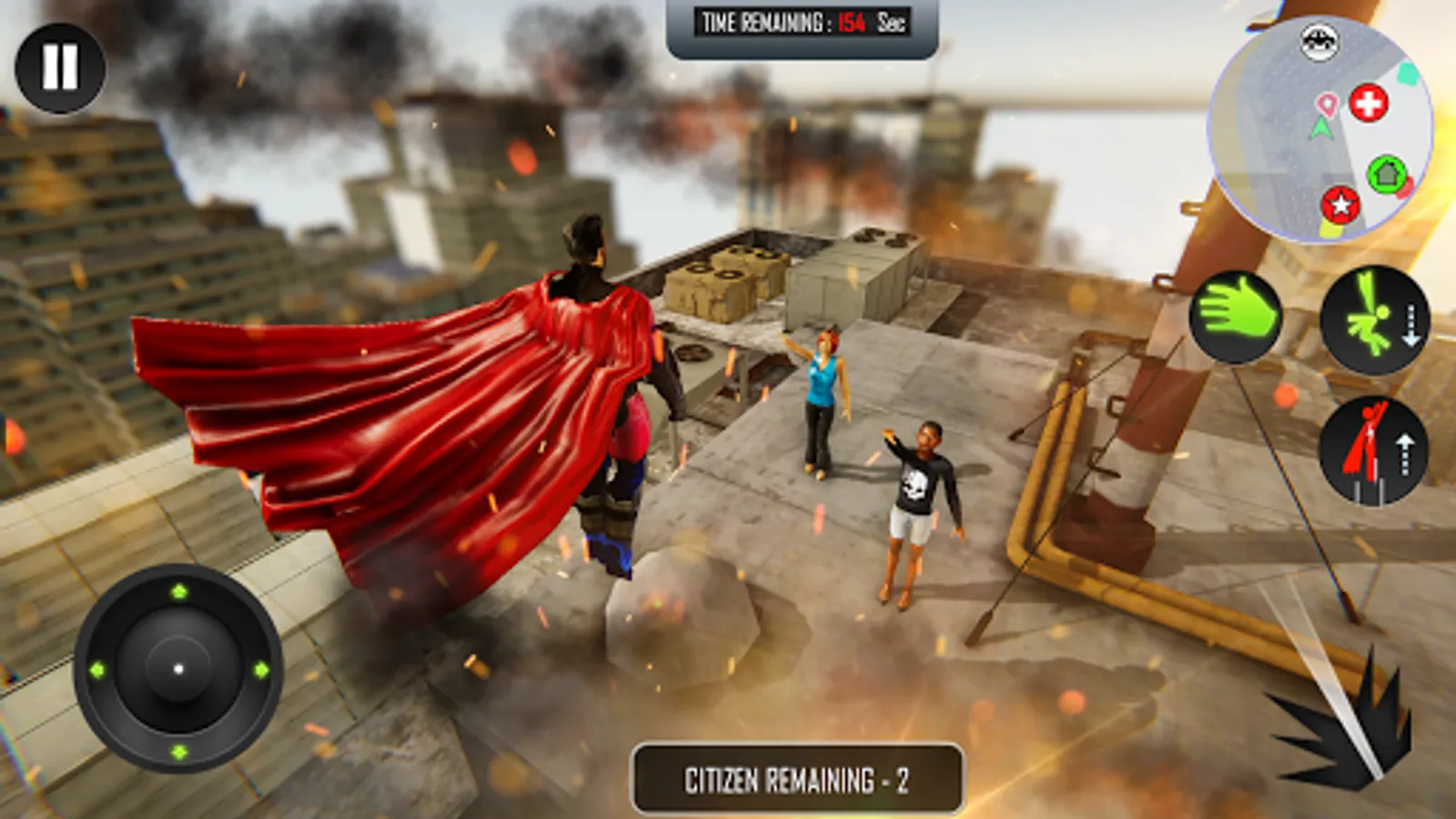 It's time to show everyone who’s boss by using your supernatural flying and rope hero powers and rescuing citizen of the city.