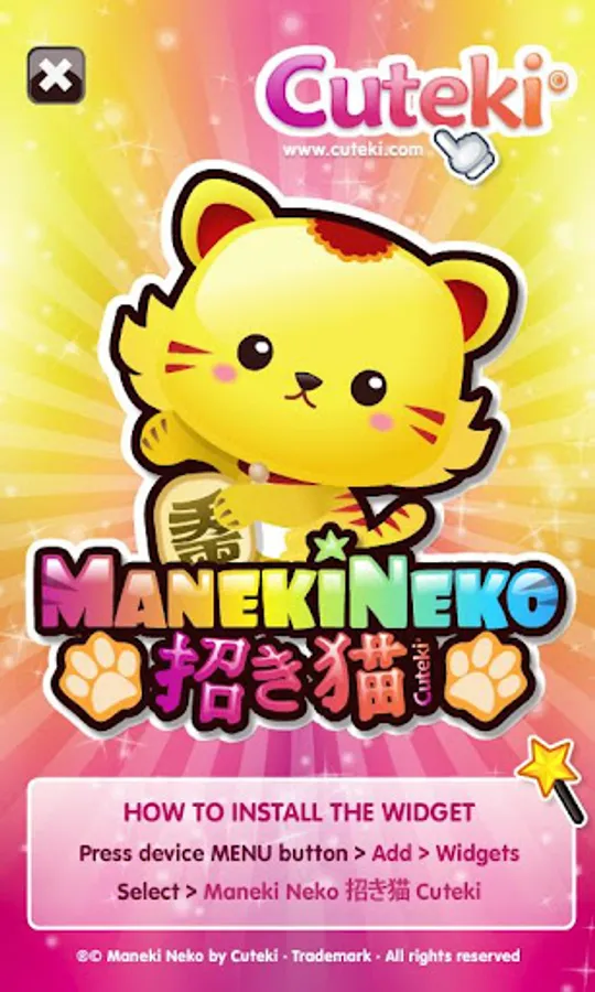 Press Menu → Add → Widgets → Maneki Neko 招き猫 Cuteki
