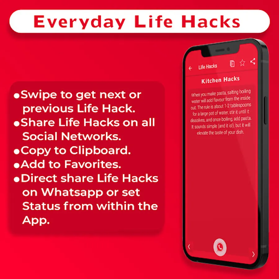 Show your friends that you can ease your daily life by downloading this app and share free tips, tricks & diy ideas on whatsapp, facebook and all other social media apps.