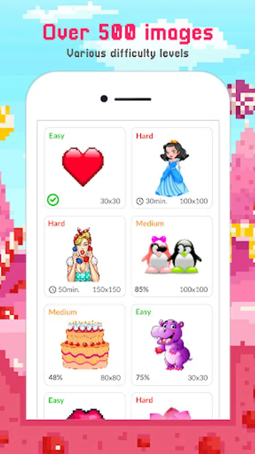 Be it unicorn pixel art, cute hearts, candy color by number, cute animals or something else, there is no way to resist this Cute Pixel Art: Color by Number. What are you waiting for? Coloring books and color by number have never been this fun!