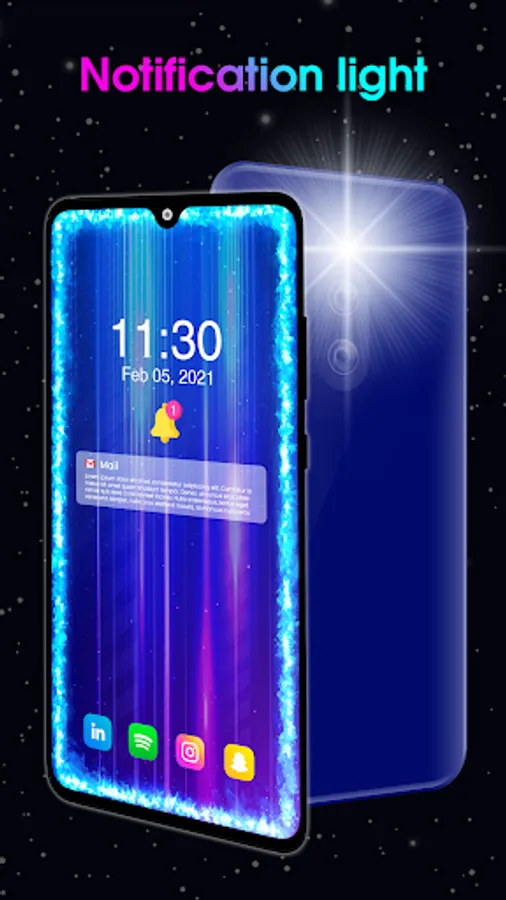 Edge Lighting: LED Notification Light, Call & SMS application adds beautiful curved rounded corners light on your mobile home screen and lock screen.