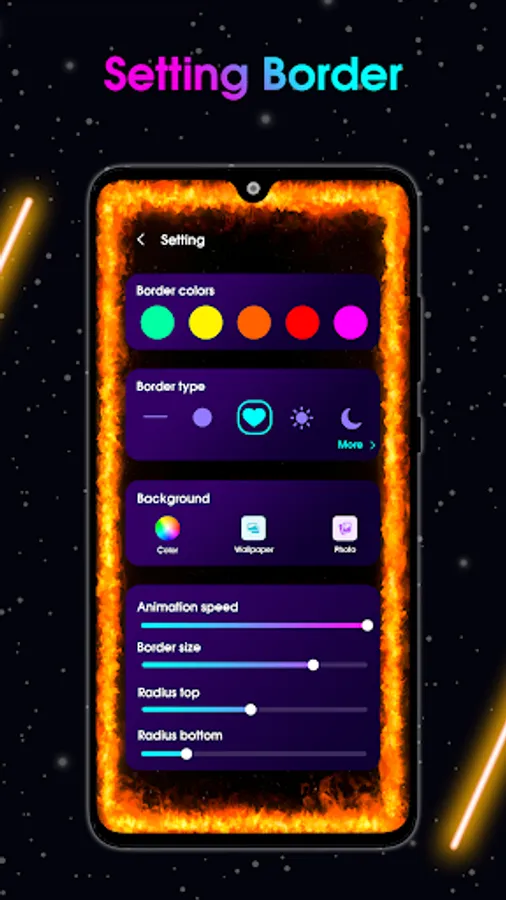 - You can use any wallpaper within border light with opacity customization and set wallpaper.