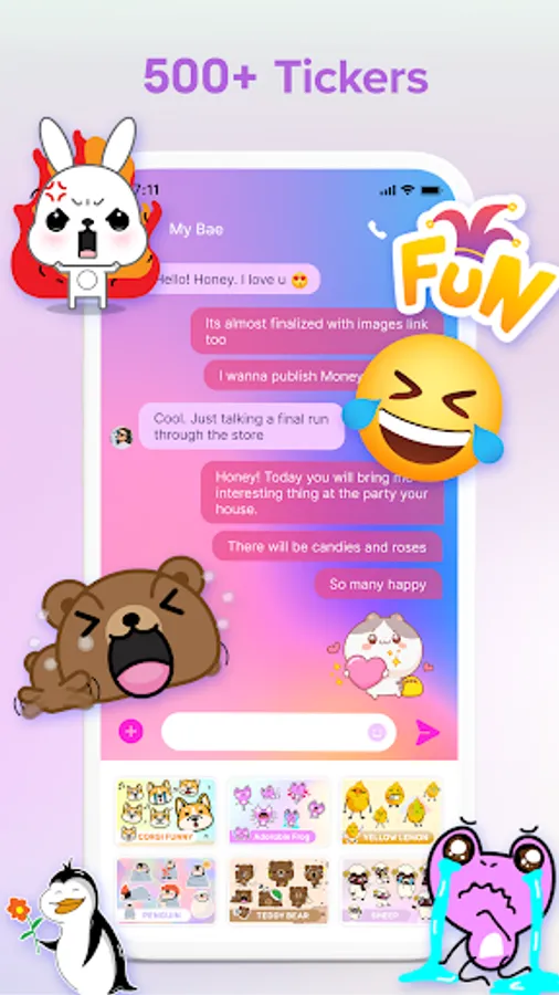 Elevate your conversations with a myriad of expressive options, encompassing vibrant emojis, stickers, and GIFs. Convert voice messages to text and apply captivating audio effects for an engaging touch.