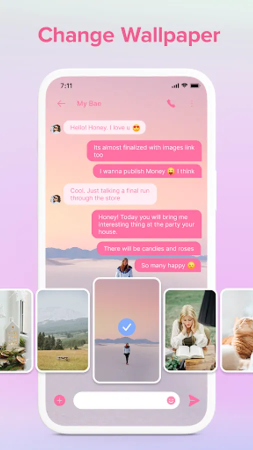 Curate a collection of cherished messages and media within a dedicated Favorites folder. Revel in the freedom to personalize your chats and bubbles, selecting from an extensive spectrum of themes, colors, and backgrounds.