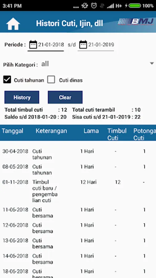 Providing easy access to information for employees of PT Berkat Manunggal Jaya in checking leave without having to come to HRD and can be accessed anytime and anywhere via a smartphone.