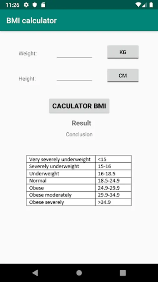 Simple BMI calculator Screenshots