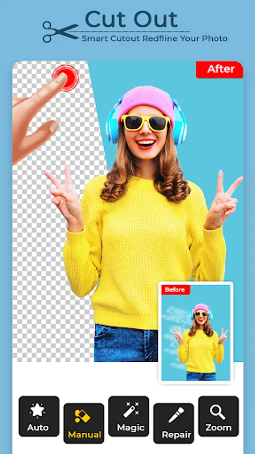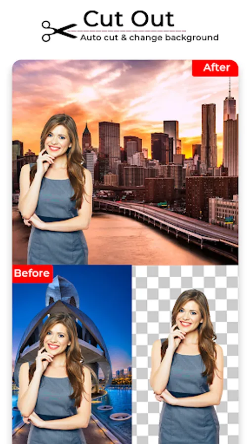 Photo Cut Out is a NextGen Auto Cut Paste Photo Editor app by which you can cut out any part of image automatically with AI Auto Selection tool and paste it on another image or background.