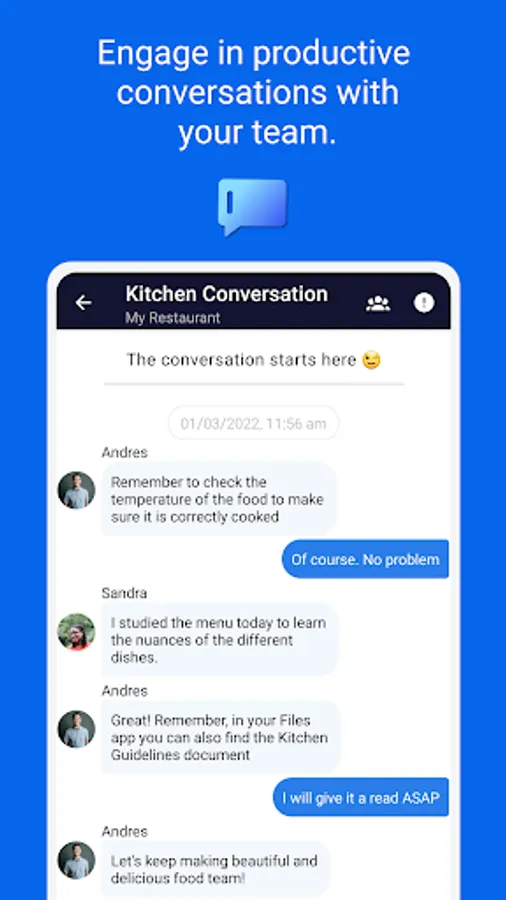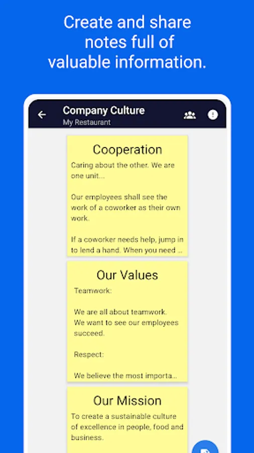 Teach company culture, best practices, and service excellence by creating notes or uploading files that your team can access with a couple of taps on their personal device. Learn about your team and gain invaluable insight with conversation polls. A better culture translates into a cleaner restaurant, more delicious food, a happier workforce, and a more pleasant day-to-day. Cuttinboard offers you the possibility to build the blueprint that will guide your restaurant to unprecedented sustainable success. Your customers will certainly notice better service and will return more frequently.
