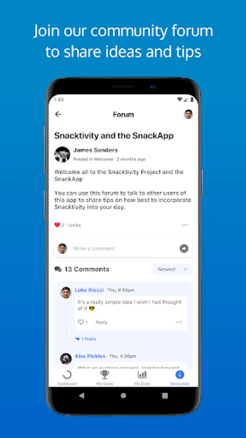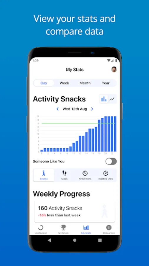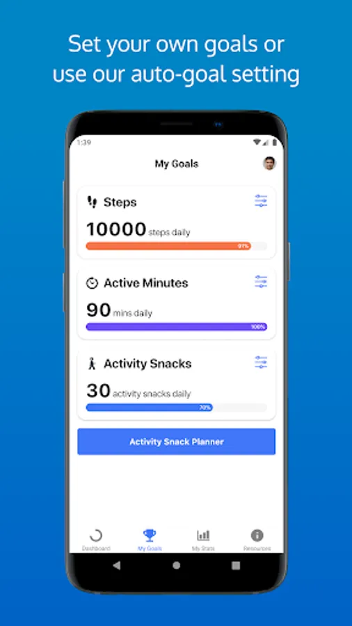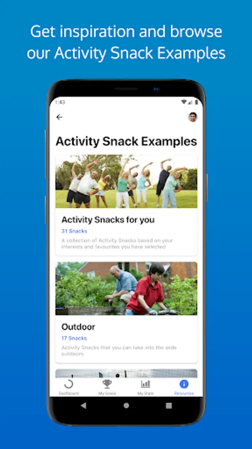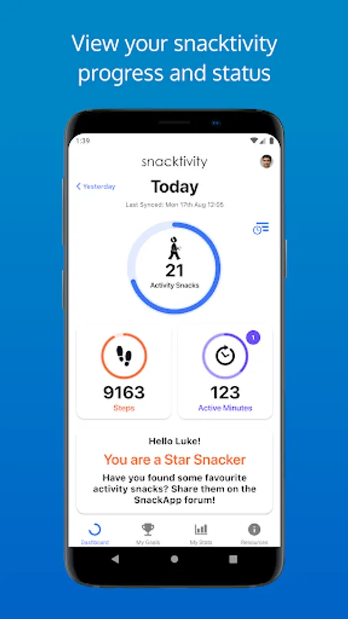 You'll be able to track your progress, set goals, plan your activity snacks into your day, get inspiration for what activity snacks you can do at home or at work, learn more about why being physically active is good for you and talk to others who are involved in Snacktivity.