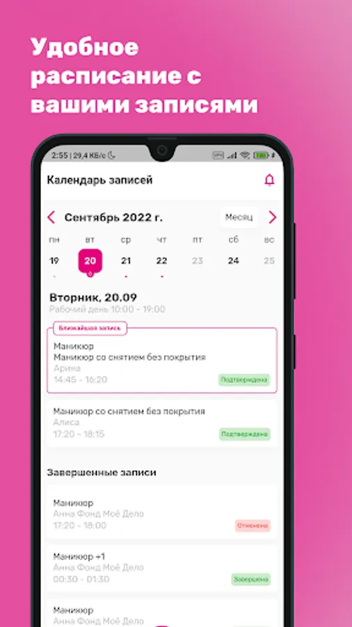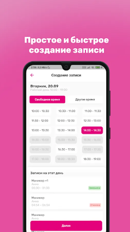 - Personal assistant Cuty will tell you what time you have already taken, so as not to create conflicts in the records