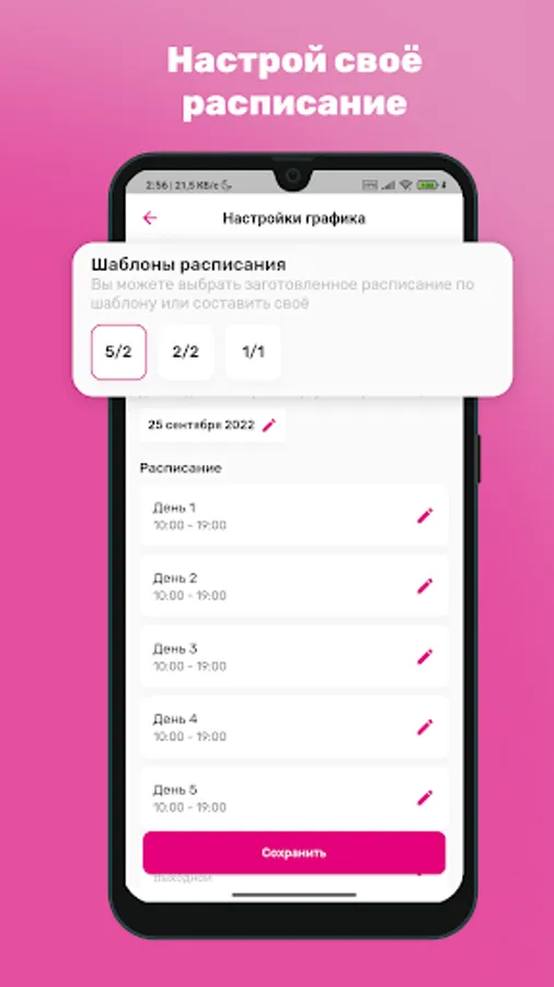 - You can specify in which schedule (5/2, 2/2, 1/1, etc.) and the time period you work