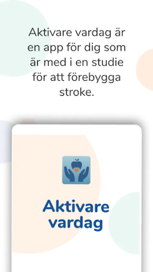 Make my day - an eHealth-based prevention program in primary care to prevent stroke and support a more active everyday life. To get access to the app, you need to participate in the research project via Karolinska Institute. To participate in the project, you must have at least three risk factors for stroke (examples of risk factors are high blood pressure, stroke in the family, low level of physical activity, overweight, being a smoker, having a high alcohol intake and having unhealthy eating habits), aged between 55-75 years old and live in the Stockholm region.