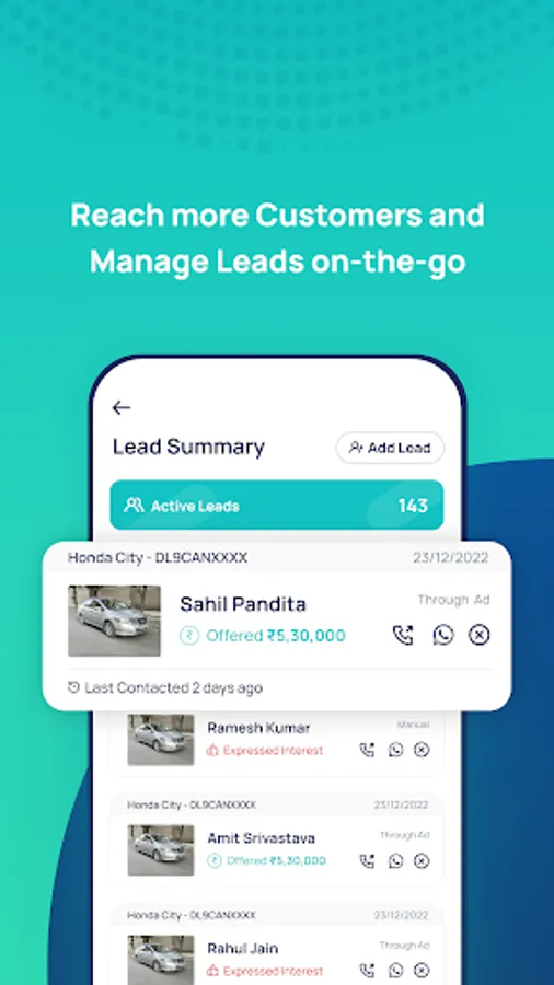 The CarInfo Dealer app is a must have app for every used Car/Bike Dealer to grow their business. Now a dealer can post his inventory online and reach new customers digitally. The dealer can track the online leads, give interested customers a call and even accept offers in just one single click. Moreover, a dealer can create leads of walk-in customers and manage them completely online in our easy to use CRM system.