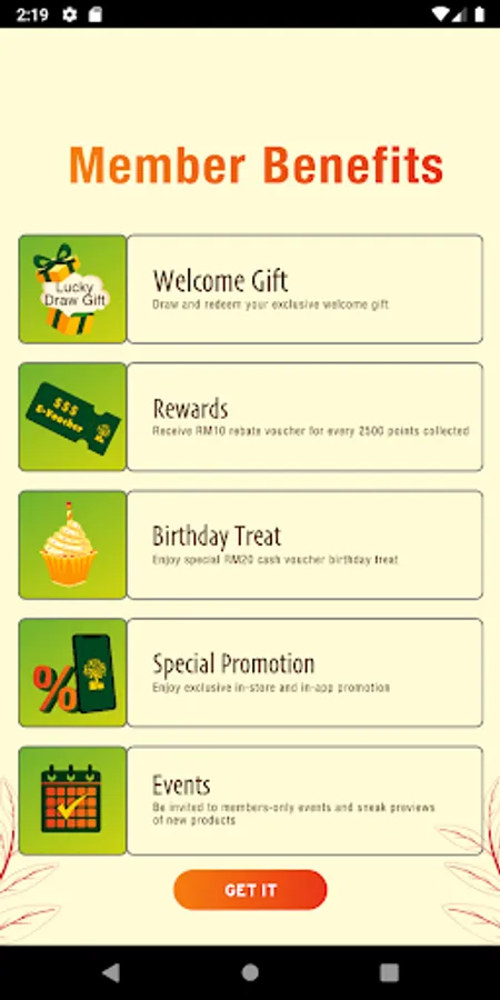 -Get Welcome Gift for sign up membership using the app!