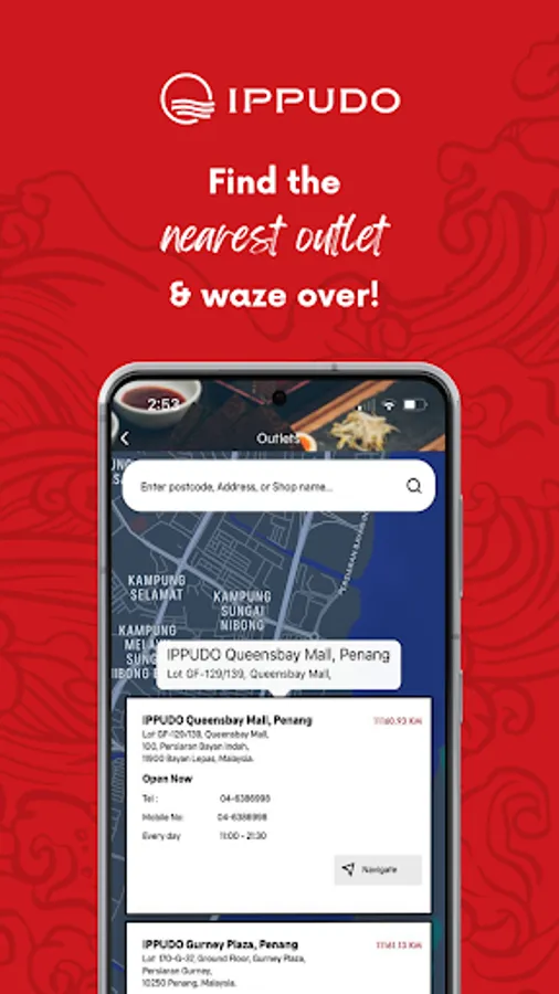 Find the nearest IPPUDO outlet based on your location and check opening hours and directions. Navigate easily with your preferred map app (i.e. Google Maps, Waze, Maps) and head over.