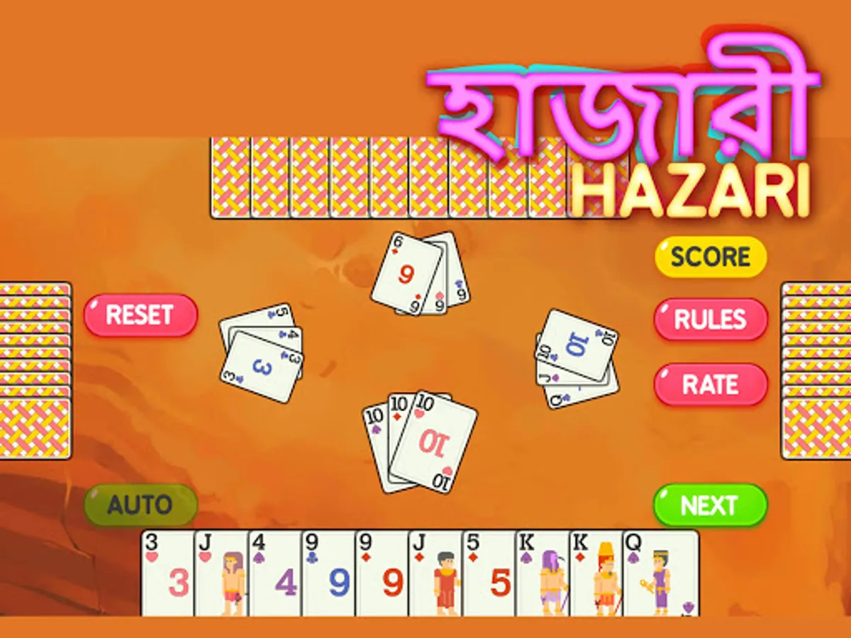 1. This is a 4 (four) players card game with standard 52-card deck. 2. Every player get 13 cards each making 52 cards total . 3. Players get a time to arrange their cards in order from higher to the lower. 4. When a player finishes his ordering or arranging his cards from Higher to Lower he Calls up. 5. When the four players are UP the first one from the right of the Dealer who dealt the cards starts to throw the card. 6. The higher card Value wins or takes all the cards and throws again the next three cards in power order. 7. After all the cards are thrown on and taken by the winning players they are then counted, who got how much. 8. Cards ranging from ACE (A) to 10 (ten) all are 10 points and cards from 9 to 2 all are 5 (five) points. 9. That includes A,K,Q,J,10 all are 10 points worth and 9,8,7,6,5,4,3,2 all are 5 points. 10. The winner is the one who has collected 1000 points all together after playing many games. 11. If a player 1 throws a card and the card is thrown same by another player the second bits the first. for example if player 1 throws AKQ of HEARTS and the second player throws 678 of SPADE and the third player throws AKQ of DIAMONDS and the fourth player throws 55J of Hearts. the winner is AKQ the third player. who takes all those cards for himself. 12. Rules of Higher order to lower order to win