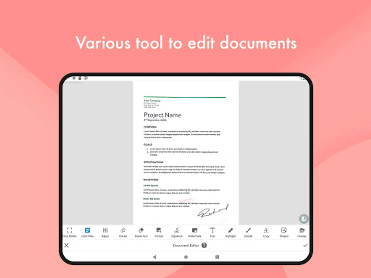 There are some additional features as well in the app which makes your document after scanning more professional and good to look at.