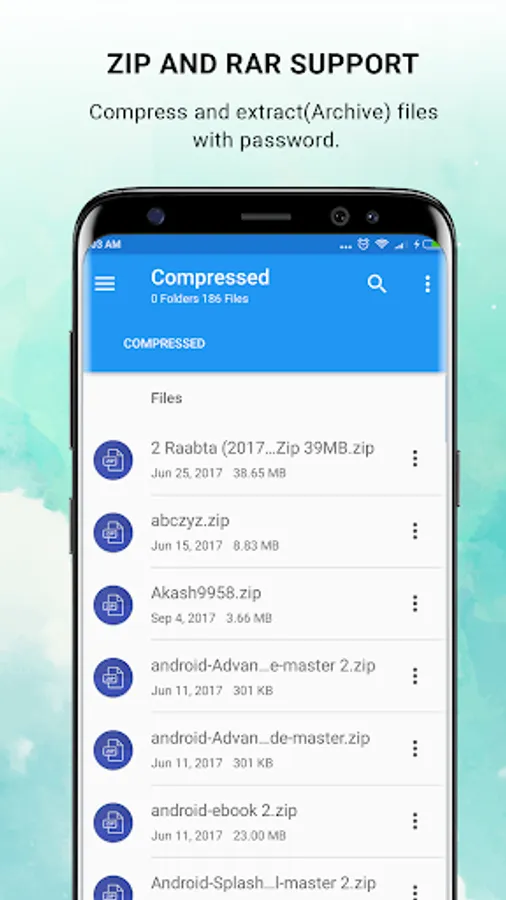 * ZIP and RAR support built-in: compressed and decompressed ZIP and RAR files with password(encryption AES 256 bit).