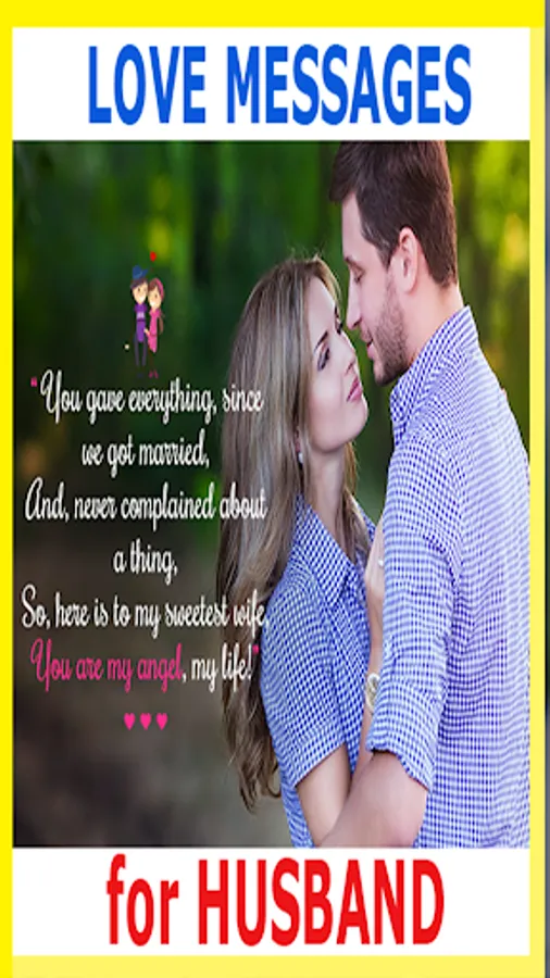 Collection of Messages of Love for Husband 2023 for you android users.Do you want to send a Message of Love to your husband? Are you looking for a Love Message for Husband application that can give you the best Love Message for Husband to send via social media applications? Do you want to explore the vast selection of free Love Messages for Husbands? If your answer is yes, then you must download and install the Love Message for Husband on your Android smartphone or tablet because it is the perfect application for you at this time.