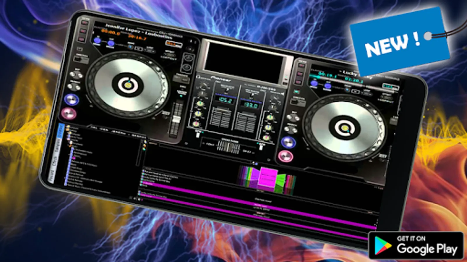 - Virtual DJ mixer with sound effects