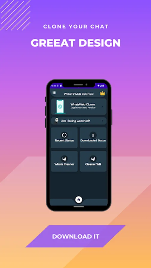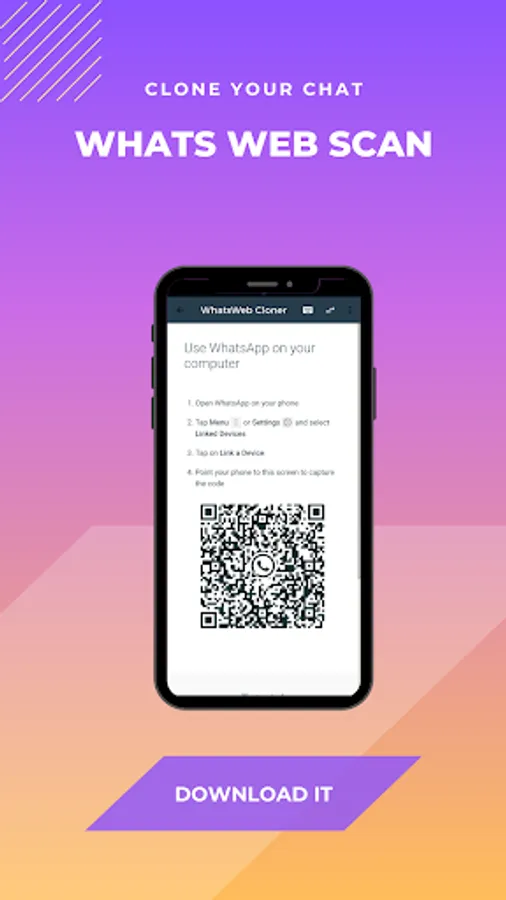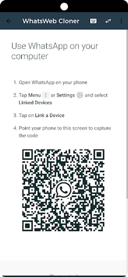 Whats Web Cloner: Whatsapp Web Cloner is a features enhancer app for your Whatsapp. Whats Web: Whatscan for Whatsapp Web is useful to open Whatsapp web in your phone or clone whatsapp into your phone. Whatscan for Whatsweb is very simple and easy to use Multiple WhatsApp account on the same device. Whatsweb Scanner App is also very lightweight.