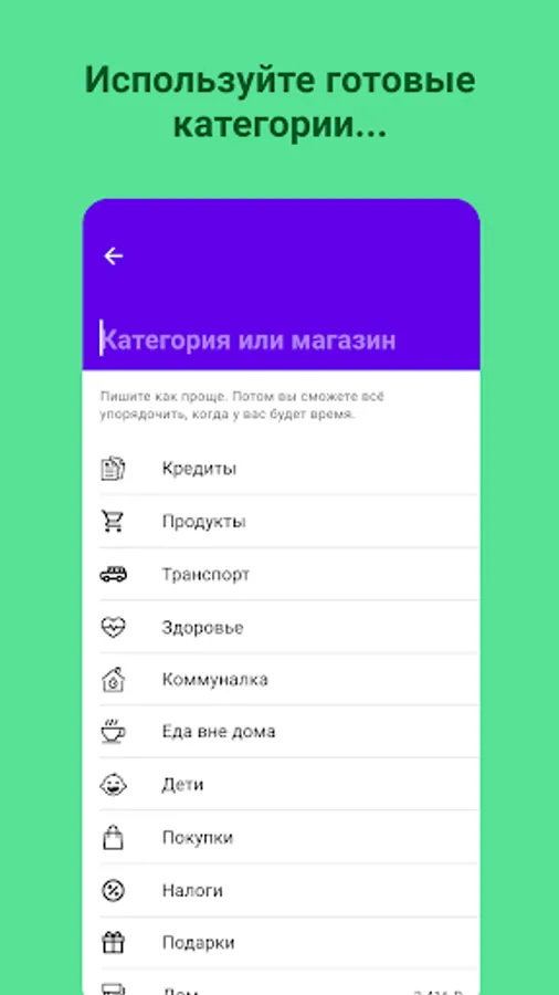 You may often encounter a problem: you have expenses that are difficult to attribute to one of the categories that the application offers you. In Mamani, you can keep accounts, keep track of your expenses and income in a way that is convenient for you. Create the categories that you need.