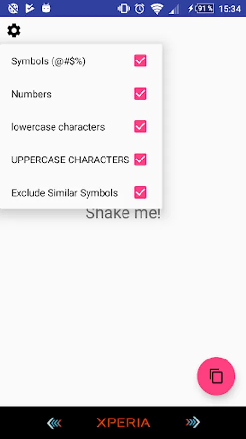This password generator allows you to make secure passwords by shaking your phone. The more you shake the phone, the stronger your password. You are given options to choose which characters your password should contain. The generated password can be copied and used in other applications by simply clicking the "Copy" button.