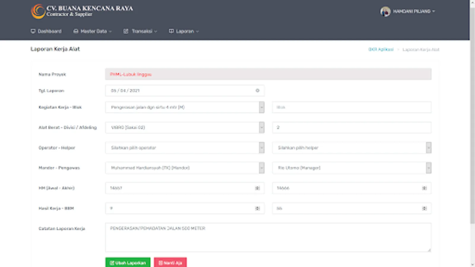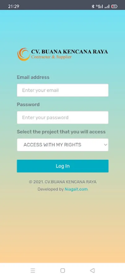 Aplikasi ini dirancang dan dibangun khusus untuk pegawai pada CV.BUANA KENCANA RAYA, di kembangkan oleh NIAGAIT.COM