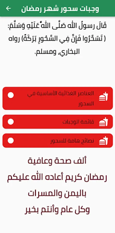 Necessary meals for Ramadan Suhoor, available only and exclusively on Google Play.