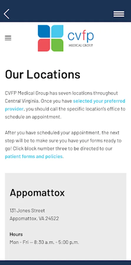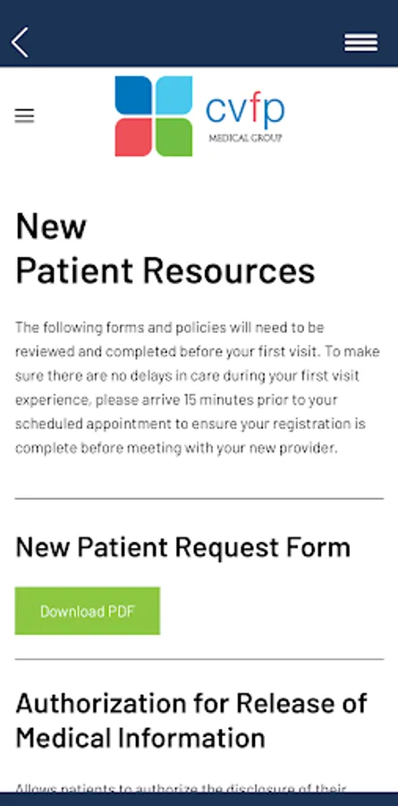 Welcome to the CVFP Medical Group app! This app serves as a way of keeping you