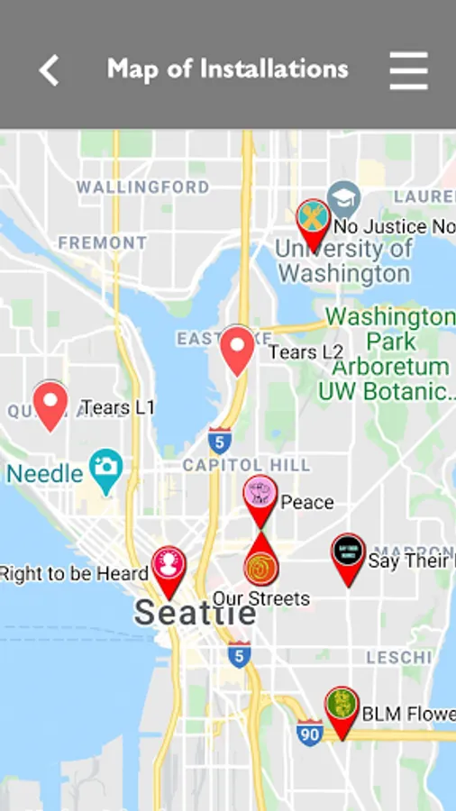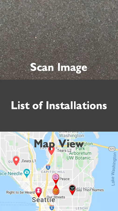 The locations of each installation will be shared with festival attendees, allowing participants to find and interact with each one. Participants will be prompted to scan the proper augmented image. After the image is recognized by the application, the virtual installation will be displayed in the real environment.