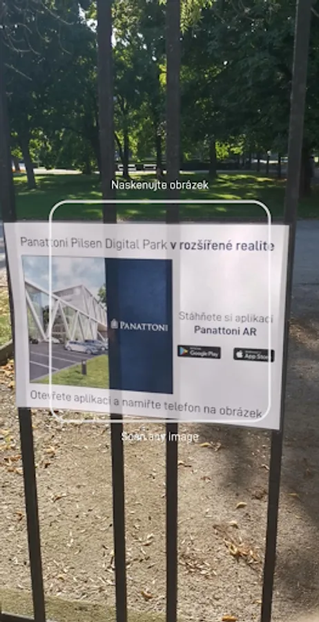 The application displays Pilsen Digital Park in augmented reality and allows the user to see what the building will look like in the context of the environment