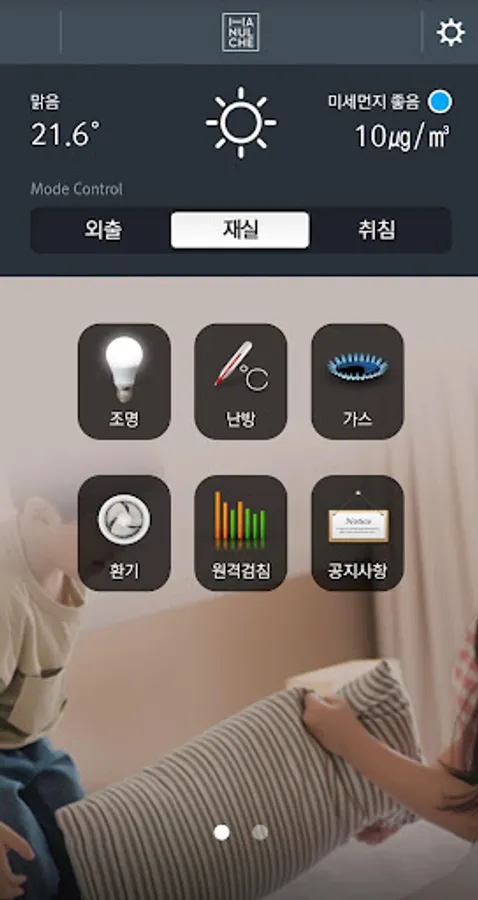 You can find information such as weather and fine dust, remote meter reading, announcements, missed visitors, courier and emergency list.