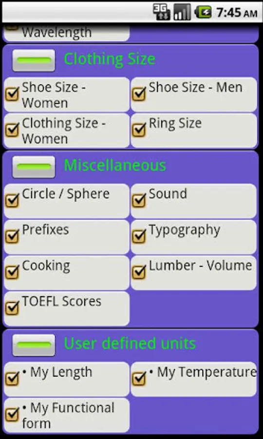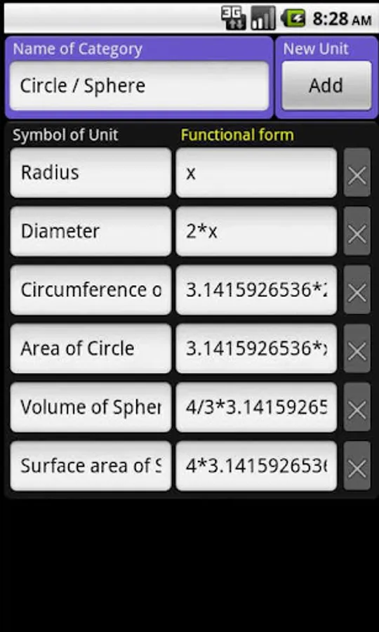* Formula type(functional-form) input for user-defined units.(ex: 2*x+5)